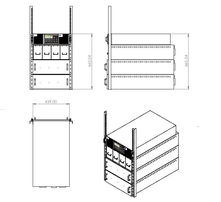 4U Battery Rack - 40 Batteries per shelf (10 x 7/9Ah per module) - withdrawable